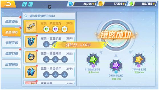 玩家身上装备还可以镶嵌三种宝石,生命宝石、防御宝石、攻击宝石,根据镶嵌宝石的等级不同增加相应的属性,获得更高等级的宝石是提升装备属性的关键,玩家也可以通过消耗低等级宝石,合成高等级宝石。