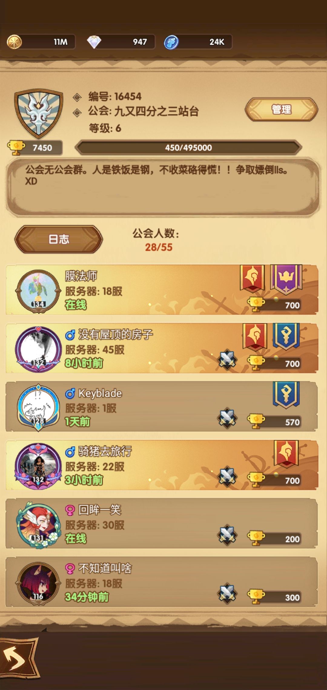 有公会有25个坑位 或者 有25~30人的公会吗 抱团取暖共同致富意下如何? 符合条件有意合并的朋友欢迎随时联系我