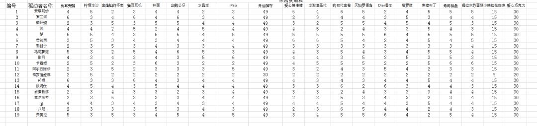 不同驱动者对亲密度道具的实际表现(目前19个驱动者角色)
