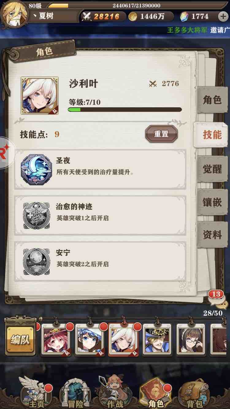 沙利叶(良心天使队奶,不配合天使队也行,不过被动就浪费了,伤害不错,奶量也可以,能奶能输出,碎片靠抽)