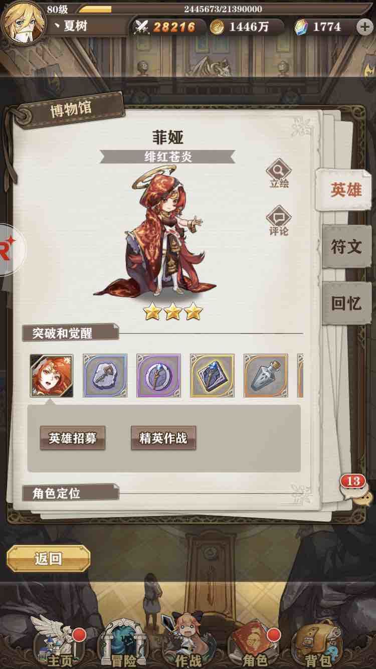 菲亚(吃火弩,有没有高阶火弩两个英雄,碎片获得较少)