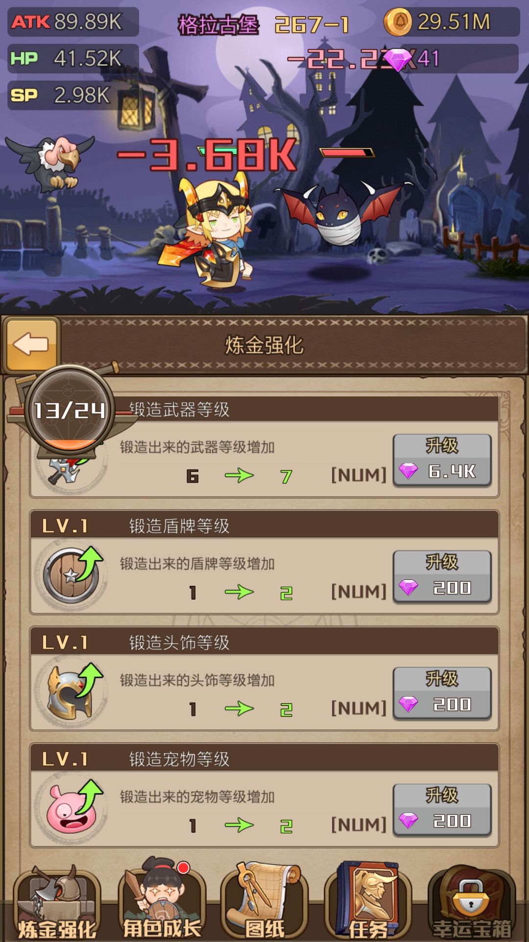 断断续续玩了6天了,快到第四章了,用别的强化技能点出1折或者免费才能强化锻造等级,真是太贵了吧T_T