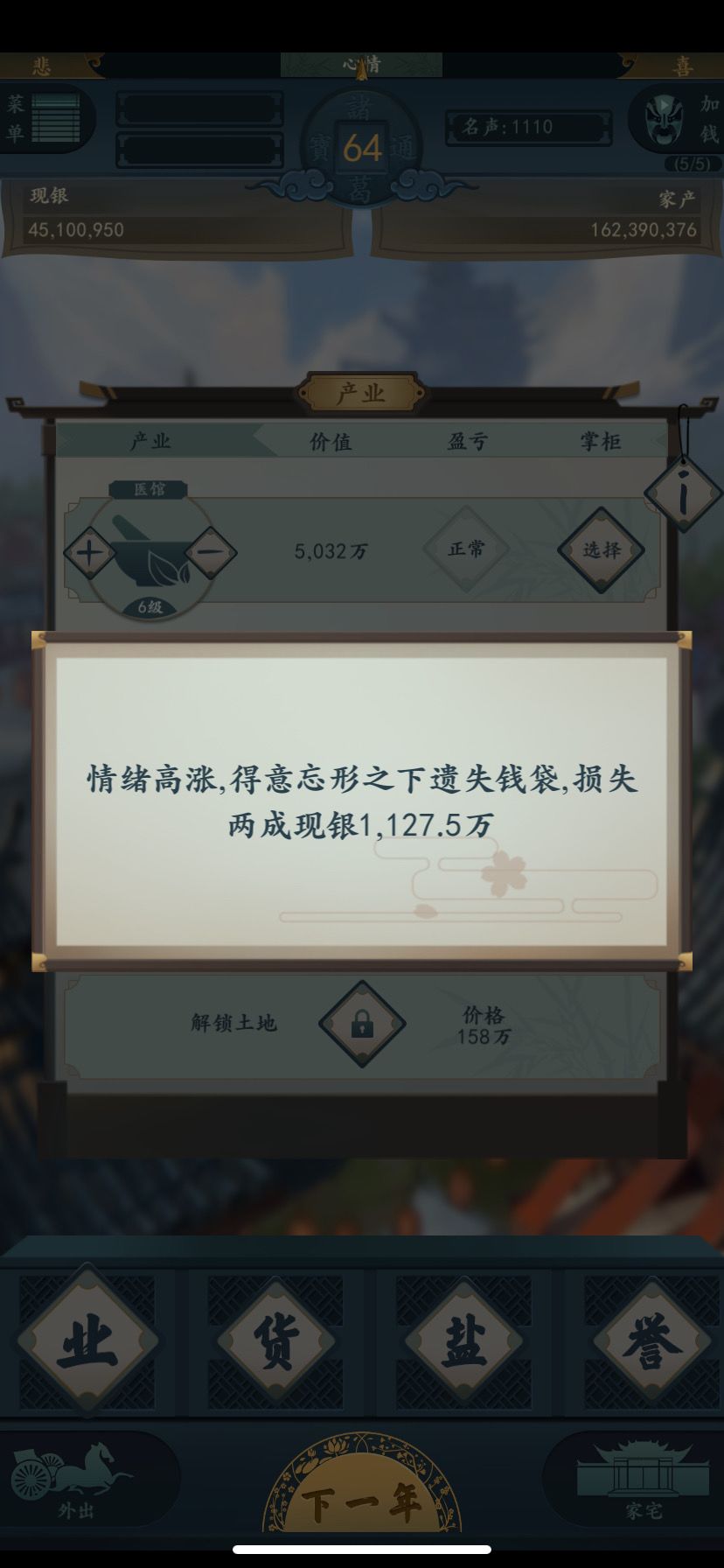 人干事?哪个大佬钱袋里放一千万现银。。。你要说银票我都不至于那么心痛。。。