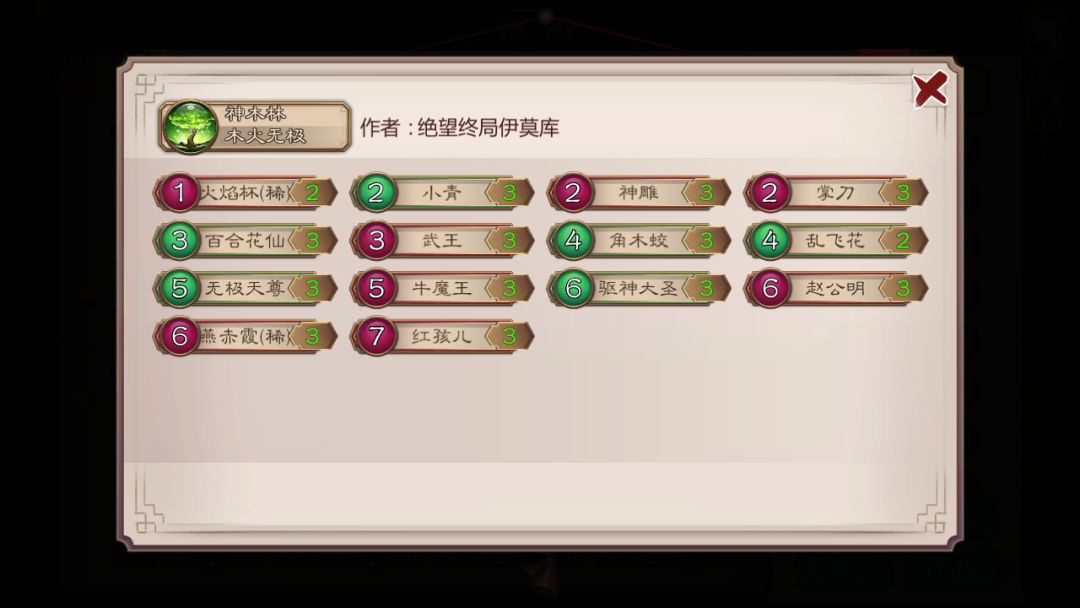 驱神大圣完善了这个卡组,无极天尊不止能拉红孩儿和牛魔王了;由于红孩儿相对容易出来,可以考虑带疯魔/撞心配合。
