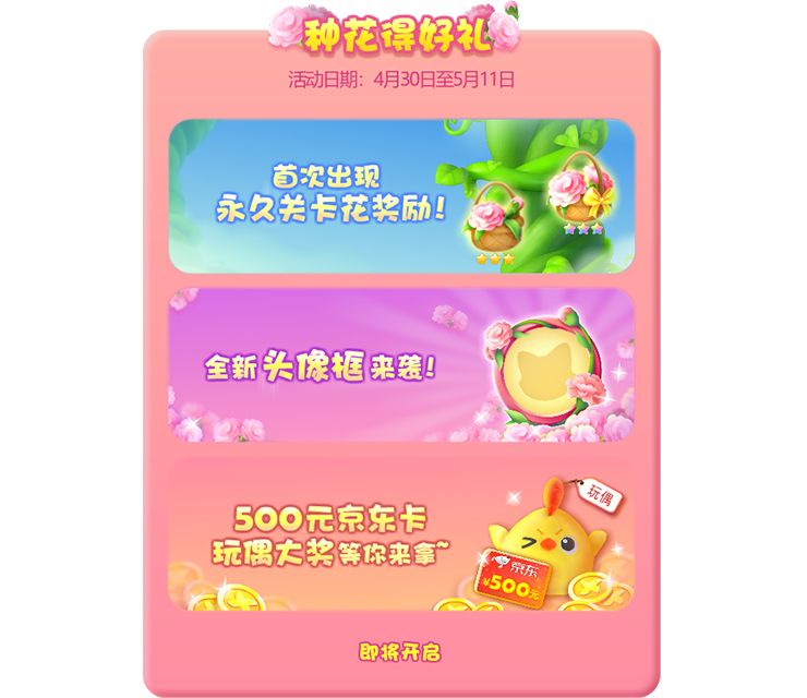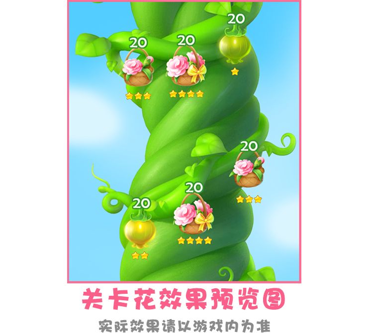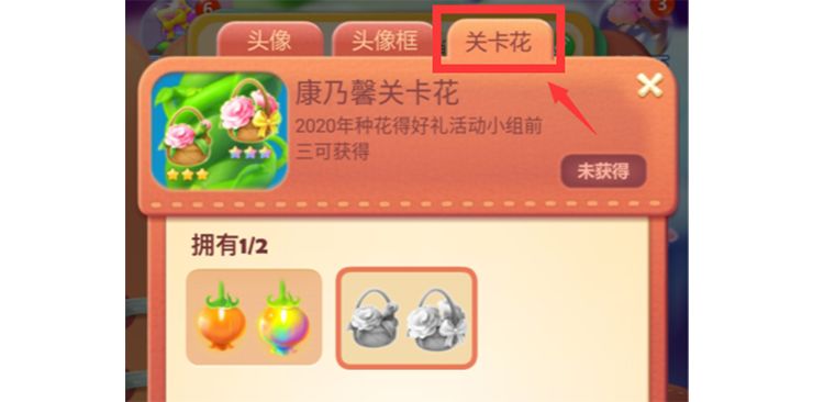 这是村长首次发放关卡花奖励,永久的!只要进行了更换,关卡达到3星或彩星分数时,关卡花将变为美丽的康乃馨花篮~
