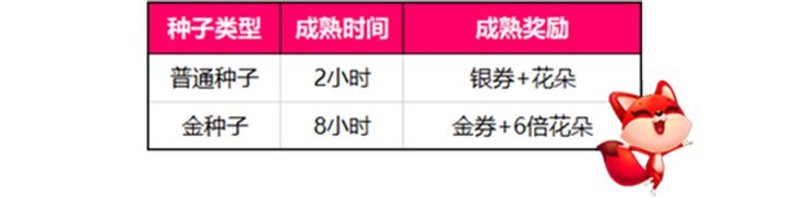 康乃馨种子分为普通种子与金种子,普通种子成熟更快,金种子收获更多,并且产出金券,是金券唯一的获取来源。