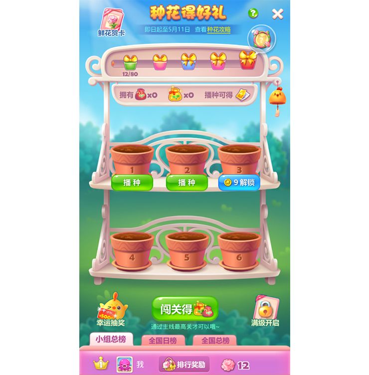 每位小村民活动开启将免费拥有2个花盆,剩余花盆需使用风车币逐个解锁,每人最多拥有6个花盆。
