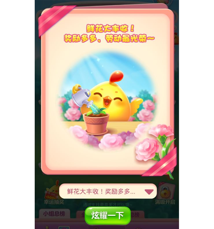 ■ 收集一定数量康乃馨可进入小组排名,活动结束时: