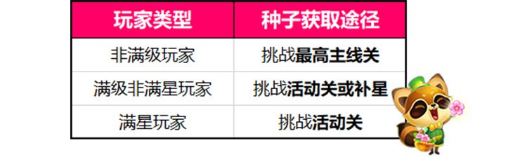 为了帮忙莱萌收集康乃馨种子,不同类型的小村民需要进行不同的挑战,挑战成功即可获得种子: