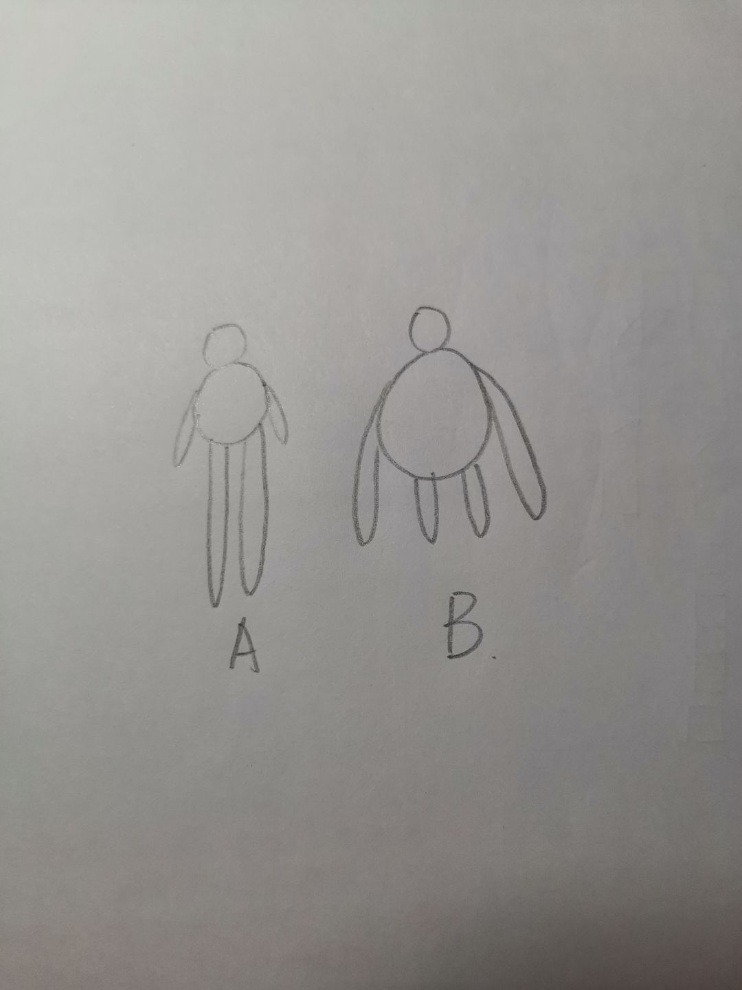 A这种明显是不行的,手太短,脚太长,但B呢?B其实是可以的喔,因为长手不但不影响,可能增加几分艺术感,所以学会人型后,还要学会变通