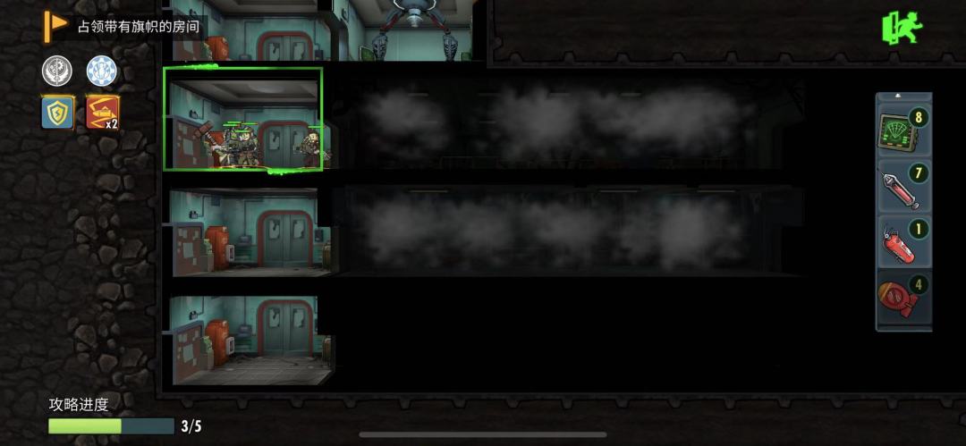 第3关,也有2个自爆机器人,神夫用过一次大以后一定要用个兴奋剂,因为2个自爆怪是连着的。 第4关,有头和尾都有大的机器人是物理免疫,这关有点坑了,下面的图2个黑色烟雾区有2个自爆机器人,我第一次进去就被4杀过,这2个地方可以打也可以不打,机器人后面房间有时候会刷出SR,SSR碎片箱子,就看你有没有欧皇的气质开出来了。