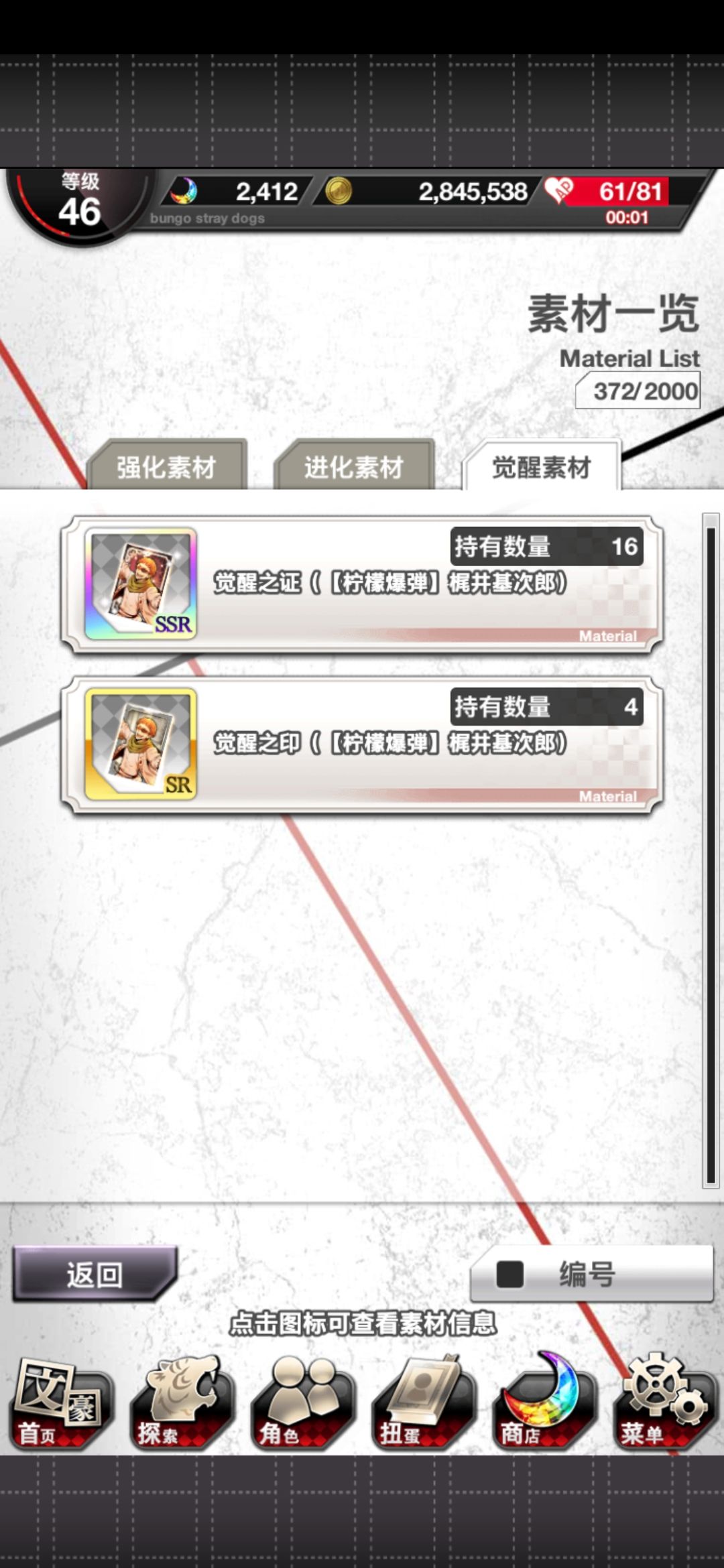 终于把柠檬打完了,掉落率有点神奇。40体力的打两三次一个都不掉,35体力打三次能掉2个。