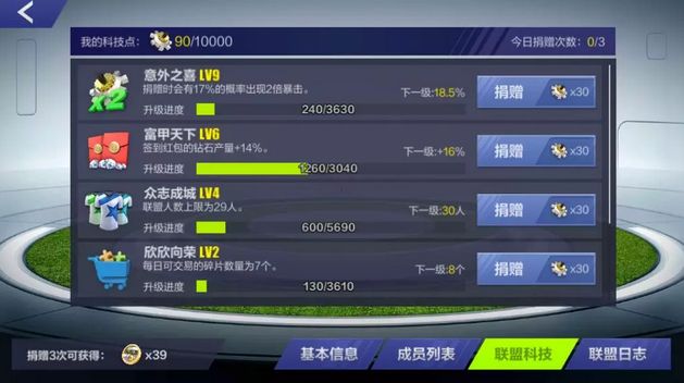 联盟科技需要靠众人募捐(消耗联盟科技点),科技提升之后,联盟和自身都会变得更强。