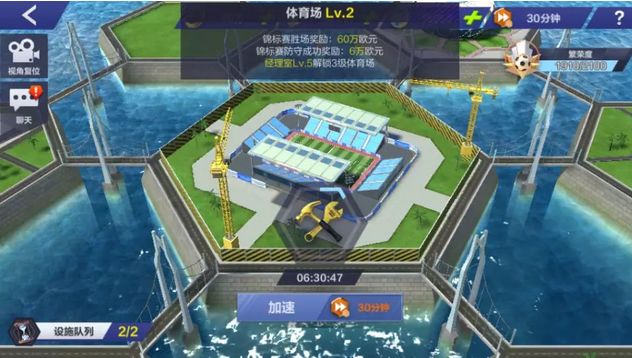 经理室升级之后,其他的设施才可以升级。财务中心和球迷中心可以产出球队基金和欧元。体育场让我们在锦标赛中获得更多欧元奖励。
