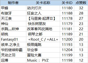 说回正经的,我们对目前游戏中各位大神制作者们的关卡点赞数进行了初步的统计,时间才过一半,就已经有这么多关卡即将达到奖励的标准了,非常感谢各位大神级的制作者的热情参与。