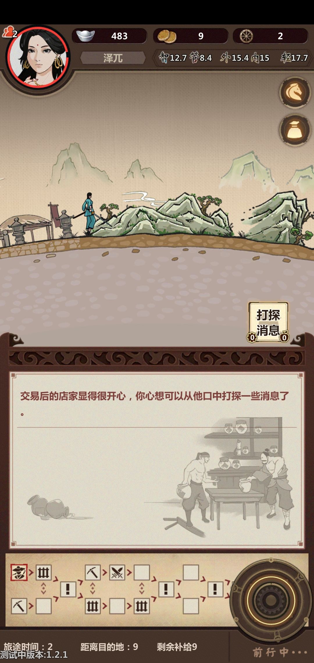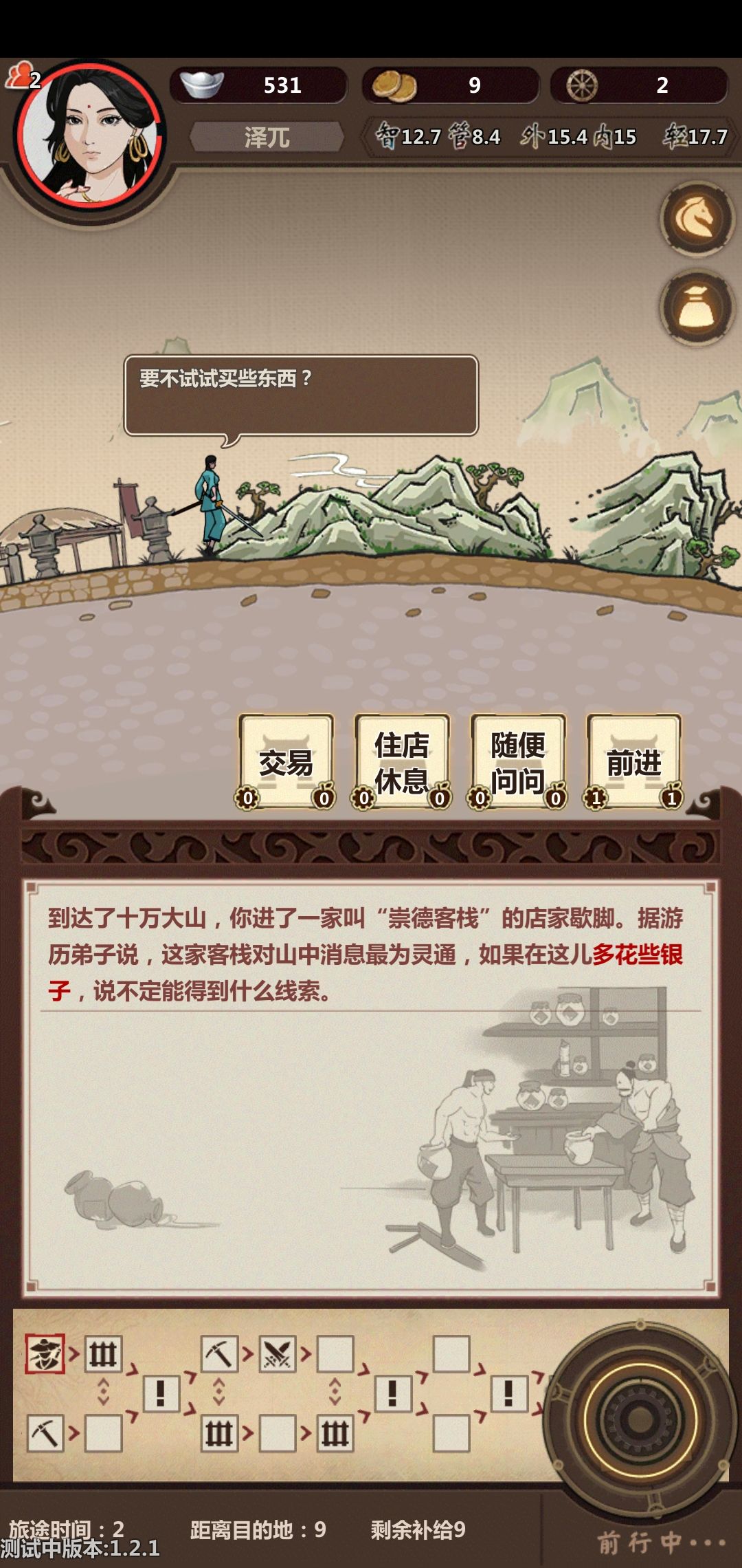 相关事件1开始时选上路,走第二个格子遇见客栈,会提示多花些银子可得线索。随便买个什么会告诉你线索了