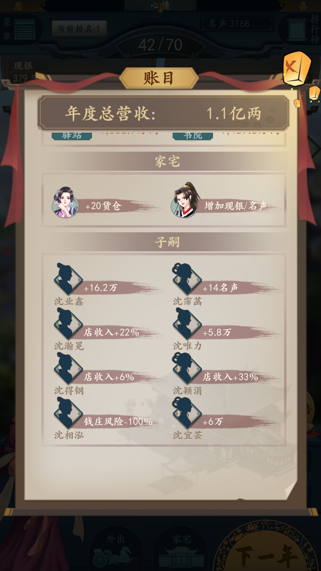 我刚才一把钱庄坏账6次倒闭4次,最高负债一百多亿,钱庄全国都买完了,所有盐矿都买了,三个最大的第一年永封,结束游戏时经我手全国已经没有能用的盐矿了,幸有9家产业全部满级东山再起,75岁老婆张嘴要生活费百亿起步,妻离子散,最后一搏变卖资产斗鸡失败手里只剩150亿不够入场费原地去世寿终正寝