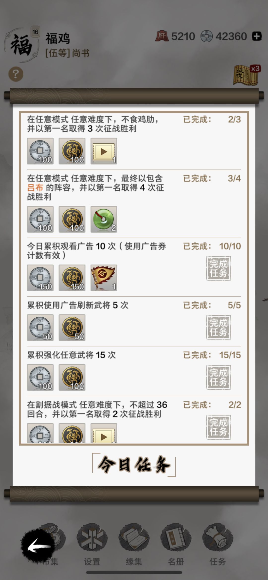 本来就差一把了 更新之后玩了一把 阵容里有吕布 也没有食鸡肋 但还是没完成任务