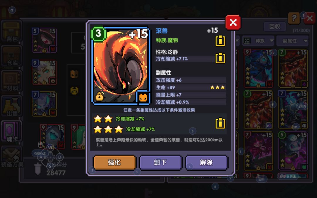 反伤不是很依赖魂卡,鉴于大多数前期玩家没有5星武器暴击值不是很够所以魂卡凑恶魔白嫖40暴击值就好,主卡选择两爆伤一攻速增加攻速提高续航,一张攻速卡+两个攻速技能完全可以吧攻速堆满,滚兽提供的冷却则减少了技能冷却时低攻速的真空期,如果能凑到25%的冷却不带滚兽也可以