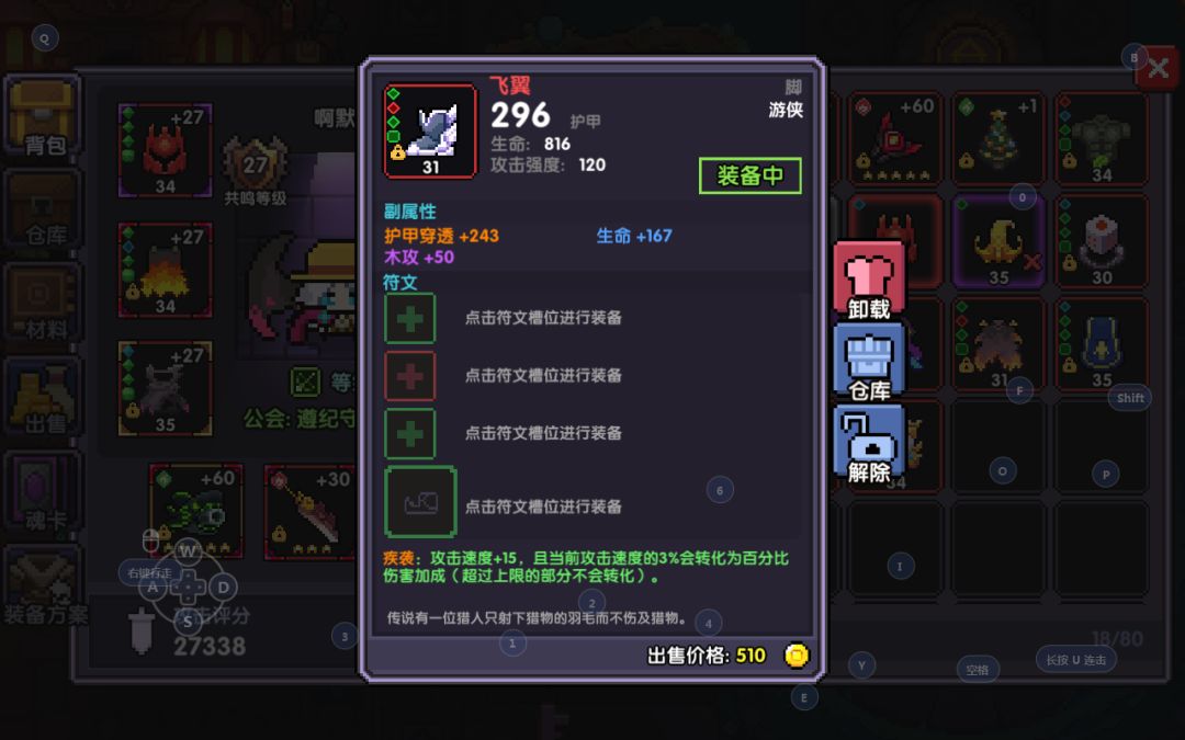 游侠为什么在前期能强大到仅靠180w秒伤和2800穿透就能打穿魔界岛91关?这个问题也是本帖的核心——六件套的伤害减免与反伤以及超强的回血能力