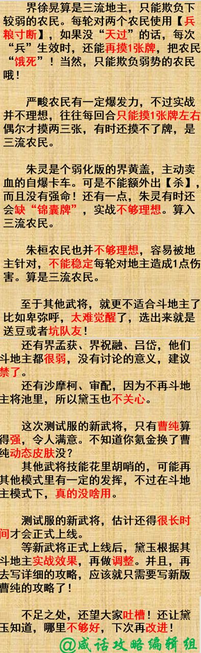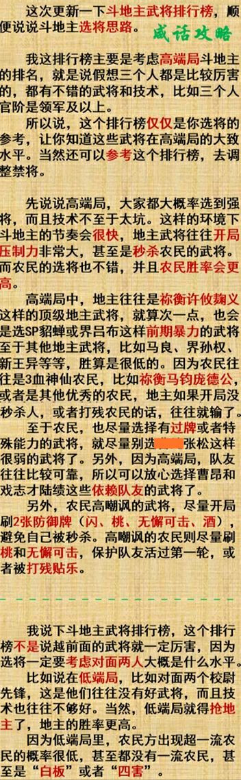 【咸话攻略】斗地主武将排行榜(2019.8.31)