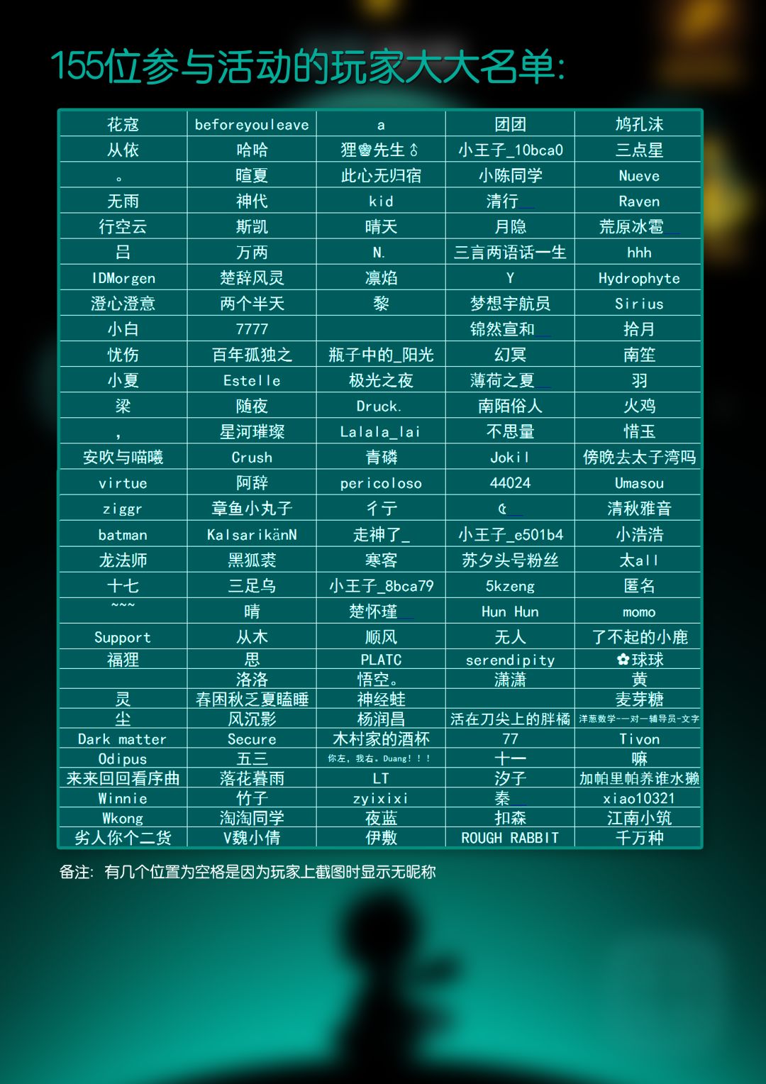 2、参与活动的大大名单
