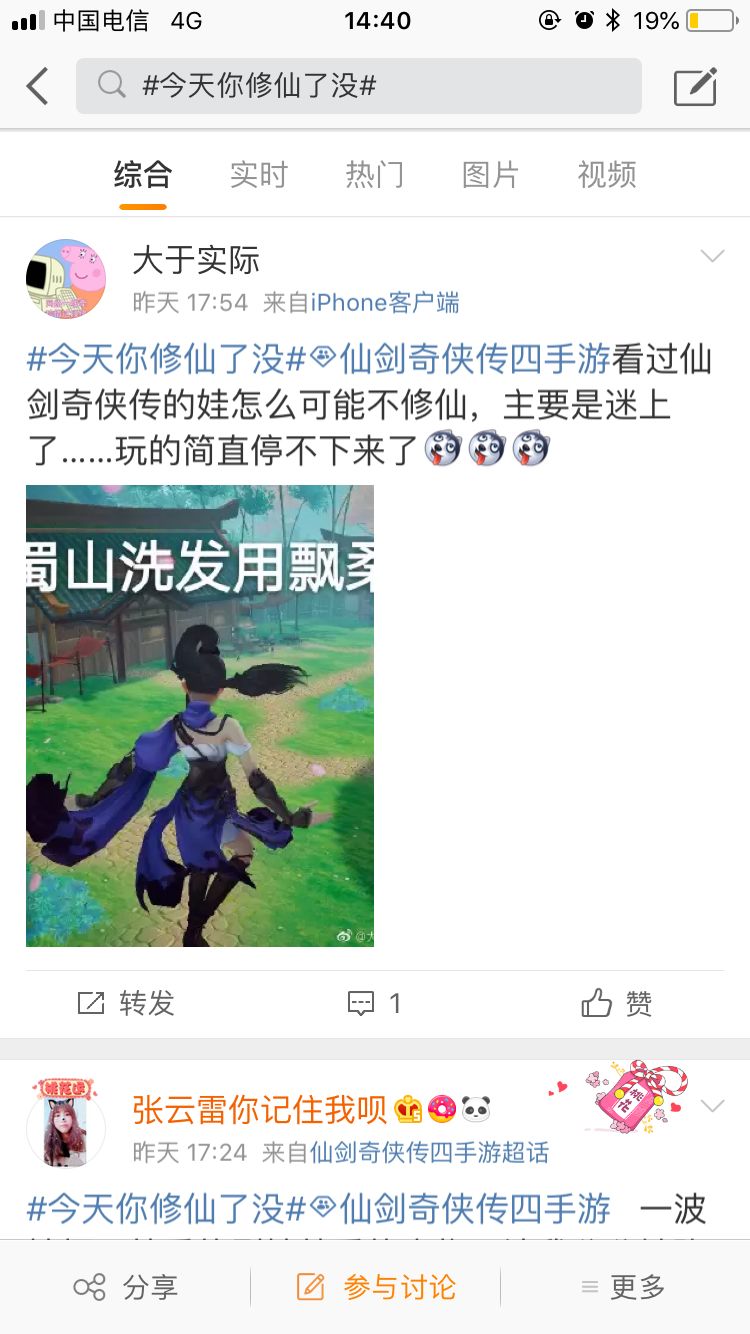 在微博话题#今天你修仙了没#之中发布你的作品,并带上超话#仙剑奇侠传四手游#就可以参加活动啦!