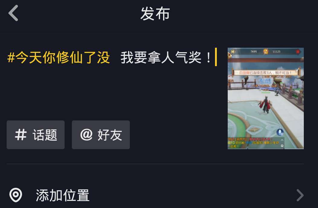在抖音/微视APP带上话题#今天你修仙了没发布作品,将有机会获得短视频人气奖~