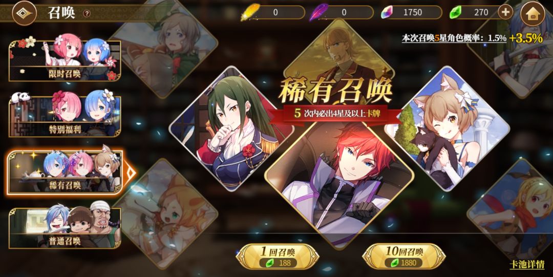 7次十连一个五星都没,概率都5%了,我呵呵了