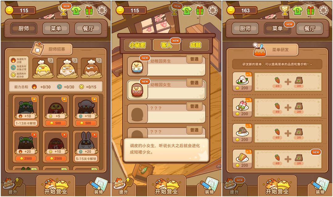 而游戏的系统也相当丰富。如果你玩过“昭和系列”的游戏就知道,收集元素可以让游戏看上去特别暖心可爱。好吧,《我一点也不可口》也不例外,收集系统包括了厨师、客人、菜谱、小秘密和成就。