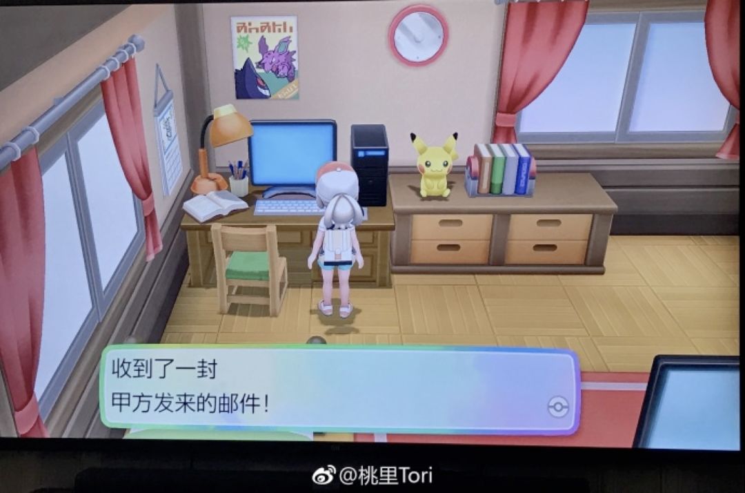 想想看,当你在游戏世界中依旧会猝不及防地收到“甲方”的邮件的时候,你会作何反应呢?这种段子式的作品还有许多。比如说,在精灵宝可梦中,当“蒜头王八”“黄皮耗子”常驻在对话框的时候,你还能正视你最喜爱的宝可梦吗?又或者,在游戏中给自己取名“老婆”,不止名正言顺享受纸片人老婆的亲昵,和男性NPC互动的气氛也变得哲学起来。
