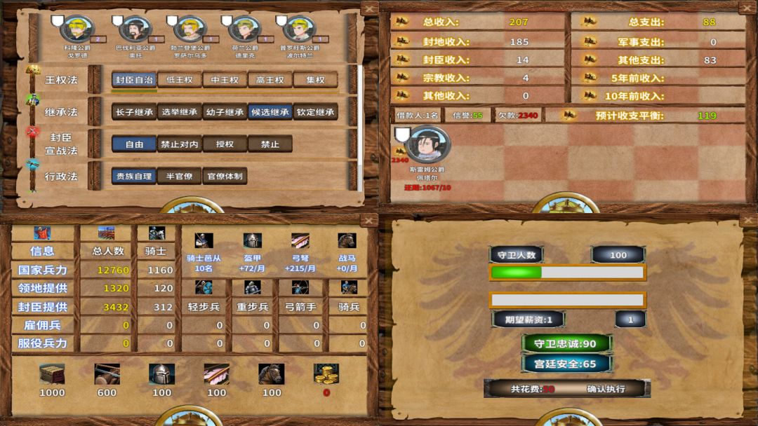 来自国内独立开发者的模拟养成策略游戏《中世纪君主》。