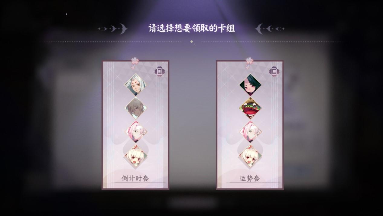 符合条件的玩家可从运势流或倒计时流中任选一组套牌,每一组中都含有一张SSR卡牌。