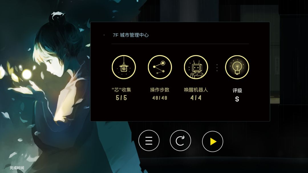 拿蓝灯,激活右侧电梯,然后站在电梯上吸收黄灯回到中层,点芯灯,拿另一个黄灯点上一个场景的芯灯,之后就可以向右走通关(93步达成