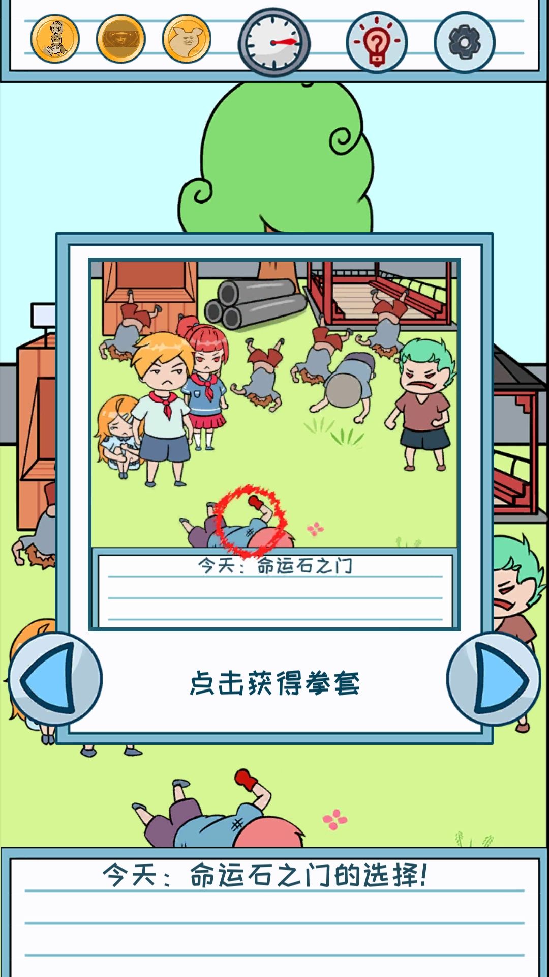成就1:把钱给老板,把头盔放桌上,把巧克力给小胖,点击左右乌云
