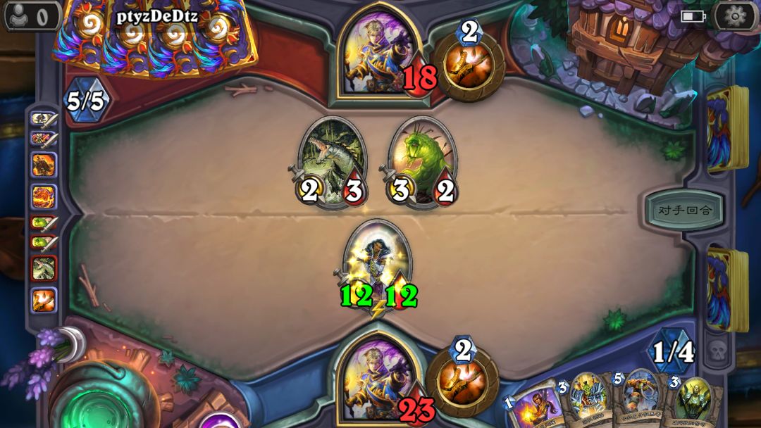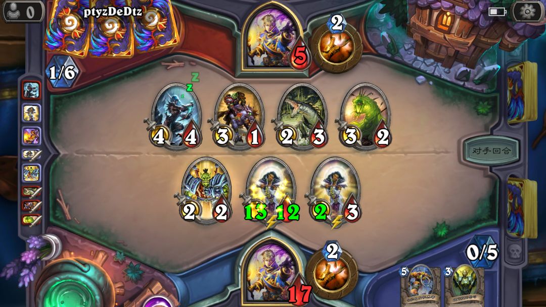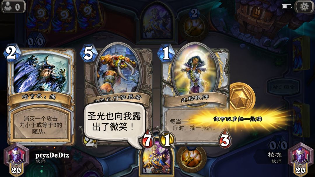 我看了他牌库的三张牌,断定他应该也是一个基础卡组牧师。