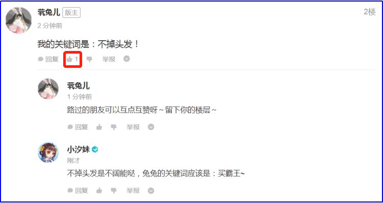 ①选出“大家觉得OK”仙友1名——关键词受赞的数量最多