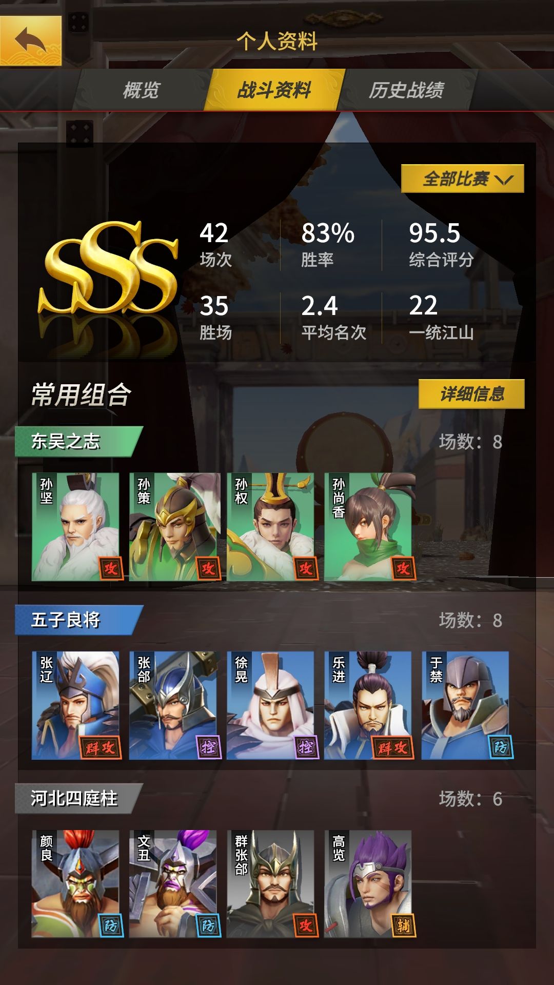 首先,我真的真的想玩五虎,不是我觉得五子不行,但这上将就比良将有安全感啊,其次吹一波河北四憨憨,莽夫力大。玩了一两百局了,总结了一些经验,不知道有没有用。-------------------------不华丽的分割线-----------------------------------一.欧皇无敌,你们随意 这个游戏真的看脸,运气好五虎上将五连抽(今天下午真实体验了连抽四个五子),或者开局碰上桃源宝宝三兄弟,我不信吕布还能战三英。只要欧气重,军神不是梦。二.非酋不泄气,大力出奇迹 绝对不能放弃,哪怕只有一滴血,只要你相信下个回合逆天改命,就一定可以,如果失败了,也没关系,再开一局就好了(真实体验,还有5滴血才组出五子,然后吊锤对面40滴血)。三.egguseful都没有的经验之谈 1.开局三将,尽力升级精英将(羁绊很强,后台很硬的那种),或者单挑王(比如孙坚,孙策这种越打越猛的孤儿),本人极力推荐孙坚开局,不急着人口,先把孙坚升到四级,除非对面全是坦克和控,开局爽上天,四级之后开始扩人口升精英。 比较强的一些羁绊 :1.五虎上将,最强羁绊,没有之一,极难成型,成型无敌,搭配桃园三结义,刘禅使用,口味更佳。主升关二爷,其次马超赵云,有了刘禅可以多上几个赵云,突后排极强。2.五子良将,极强,极难成型,建议均衡培养,先升乐进到四级,再按张辽徐晃张郃于禁的顺序升到四级(四级有1000血,配合乐进五根箭极其恶心)再升乐进到6级。可多上张郃,控制输出都很强。3.天道(于吉+张角),可搭配多近战羁绊(比如五虎和五子),主升于吉,再保证血量的情况下优先到六级,迅速发展人口,多买坦克,坦克升到2级就好,成型快,易搭配,伤害高,经常逆风翻盘。4.东吴之志(孙坚和他的一家四口),成型较快,羁绊很强,除去孙权每个人都可以单独使用,配合该羁绊,孙权可以逆天(吸收死去队友的攻击和血条),孙坚还是4级,主升孙策和孙尚香,孙尚香可以上多个,秒天秒地秒空气,孙策搭配大桥,一个打十个。该羁绊可以巧妙的搭配所有羁绊。4.河北四憨憨(颜良和他的小伙伴们),成型快,羁绊强(我觉得恶心更好形容),不用太多解释,抽到了就升满(前提是四个都有)他们会告诉你结果的。5.东吴四英杰(四大都督),成型快,羁绊强,伤害巨高(弹弹弹弹走鱼尾纹),优先陆逊周瑜(记得挂小乔),吕蒙建议升到3级,运气好,一人灭队,可以多上陆逊和周瑜(挂小乔),容易被河北死憨憨锤爆。5.不死吕布,把吕布的羁绊挂满,然后可以多上吕布董卓和陈宫(一个打不死,一个莽夫,一个机关枪)主升吕布。(个人不是很喜欢)6.曹操+许褚+典韦,真的莽夫力大,曹老板无限控制许褚锤天地,建议先升到四级,可以用典韦换下夏侯惇。7.夏侯渊+曹仁+夏侯惇,核心是夏侯渊,建议用典韦替换夏侯惇,曹仁和夏侯渊组成羁绊后都有很强的控制能力,主升夏侯渊。8.司马懿+郭嘉,极易成型,伤害高,只升司马,可以多上司马懿,然后轰轰轰。9.诸葛亮挂羁绊,主升诸葛亮,建议只挂孟获和祝融。10.吕布+赵云+刘禅,多个吕布缠住前排,多个赵云突后排,这个阵容没亲测过,目测还可以。11.甘宁+孙坚,主升孙坚,摸到后排,然后一刀一个小朋友,被突过,很强,跟强……12.魏延和孙坚,可以不挂羁绊,单兵素质跟强。13.要买的英雄我只玩过典韦,所以其他的羁绊我也没什么经验,据目测黄盖很猛。