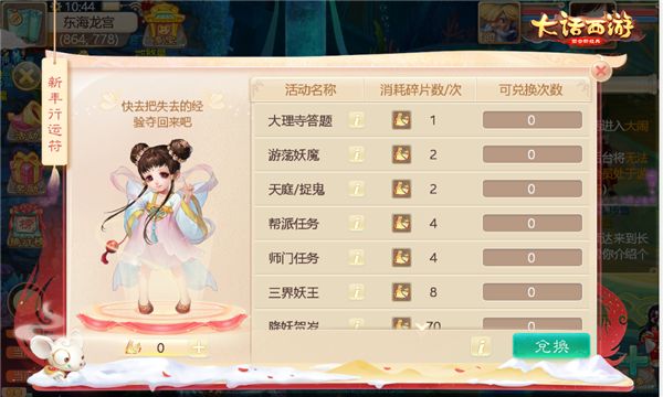 除了合成之外,1转100级以上的玩家也可以用行运符碎片来兑换春节期间错过的日常活动经验,少侠再也不用担心春节期间错过经验了!行运符活动在春节期间将持续不打烊,少侠们快来收集新年幸运符碎片,把各种鸡驴大神准备的福利带回家吧!
