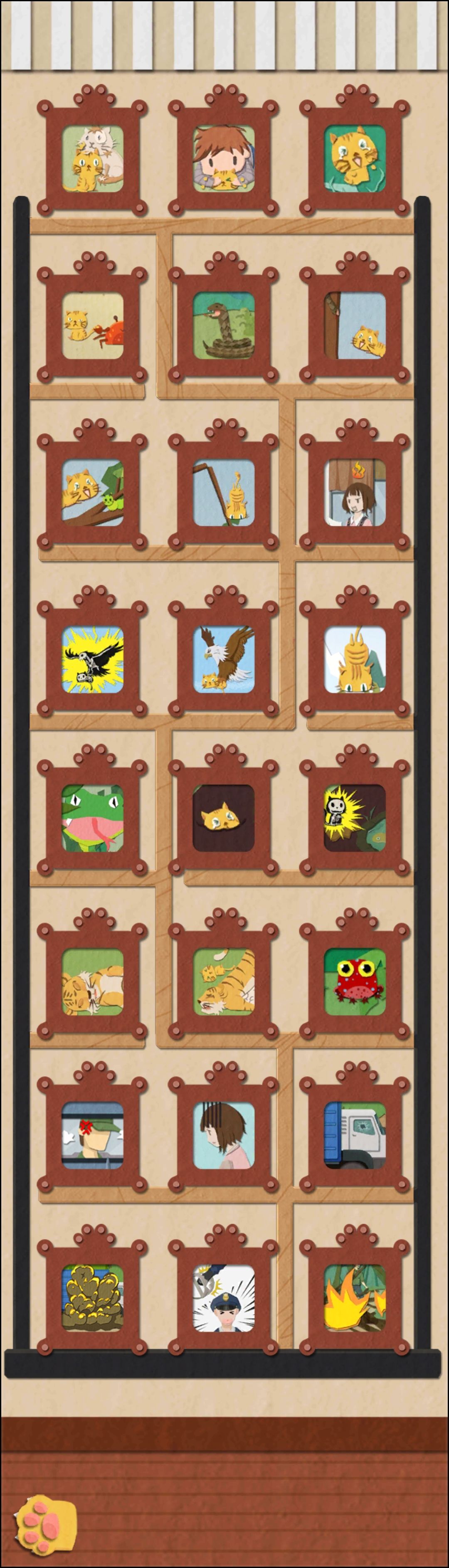 第12关,先去拿骨头,狗狗的牌子在左边,猫猫的在右边。拿到骨头之后给主人,主人放在盘子里,不要立刻去点,等一会,然后第二次也是如此,主人就给你一个2号的木头,加上墙角的五个数字牌,开始解墙上的公式,具体过程不多说,最后的顺序是589642,出现电话,输入那6个数字就好了。