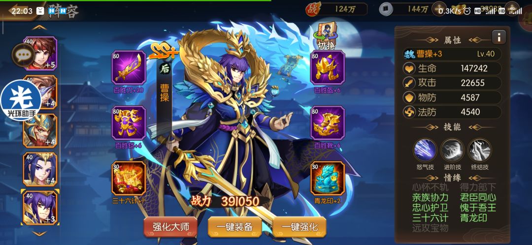 (点评:魏国曹操属于最强势的ss+武将没有之一,谁用谁知道。夏侯惇属于前期比较强的回血型肉盾,张辽最废的sss武将没有之一。小氪和纯肝比较适合的前期国家,曹操伤害突出,夏侯惇能抗不能打,主力曹操,普遍+4期间最强势)