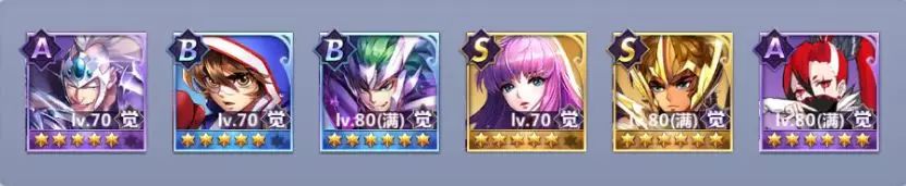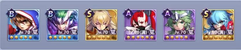 星矢,猎犬和枫携带大鹏鸟,沙加携带百目,六怪兽选择了两生花提升召唤物战斗力,双鱼选择水泽精灵。开局星矢起手彗星拳给关键目标套虚弱,后续猎犬和枫的协战会在首轮打残一人,大鹏鸟可以保证沙加或者六怪兽能放出技能,第二回合星矢天马流星拳对残血目标进行补刀。整体来说是一个爆发很高的阵容。