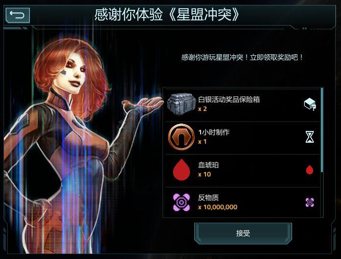 《星盟冲突》春节福利内容如下: 其中,2月7日-2月14日每日登录可领取,包含白银活动奖品保险箱X2、1小时制作时间代币(通用)X1、血琥珀X10、反物质X1000W、氦-3X1000W、矿石1000W。