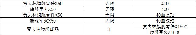 另外,为保证各种途径获得贾夫林旗舰指挥官的利益,金币与血琥珀兑换贾夫林旗舰零件、军火的比例都会调整为50,兑换价格保持不变。并且贾夫林旗舰成品的兑换比例也相应调整为1500,请各位指挥官注意!