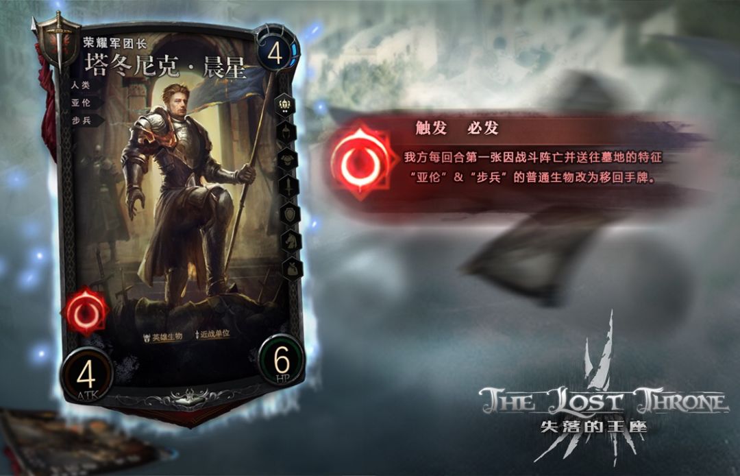 以上就是有关塔冬尼克·晨星的介绍啦~后续内容会在近期持续更新~欢迎大家加入我们的qq群与设计师以及其他同样喜欢卡牌游戏的玩家们来分享你的想法和体验~失落的王座|前哨营地:909384372