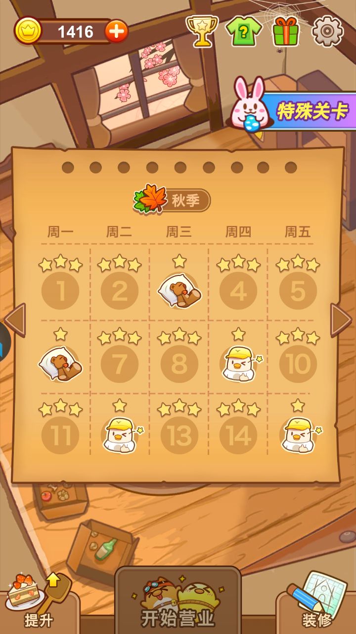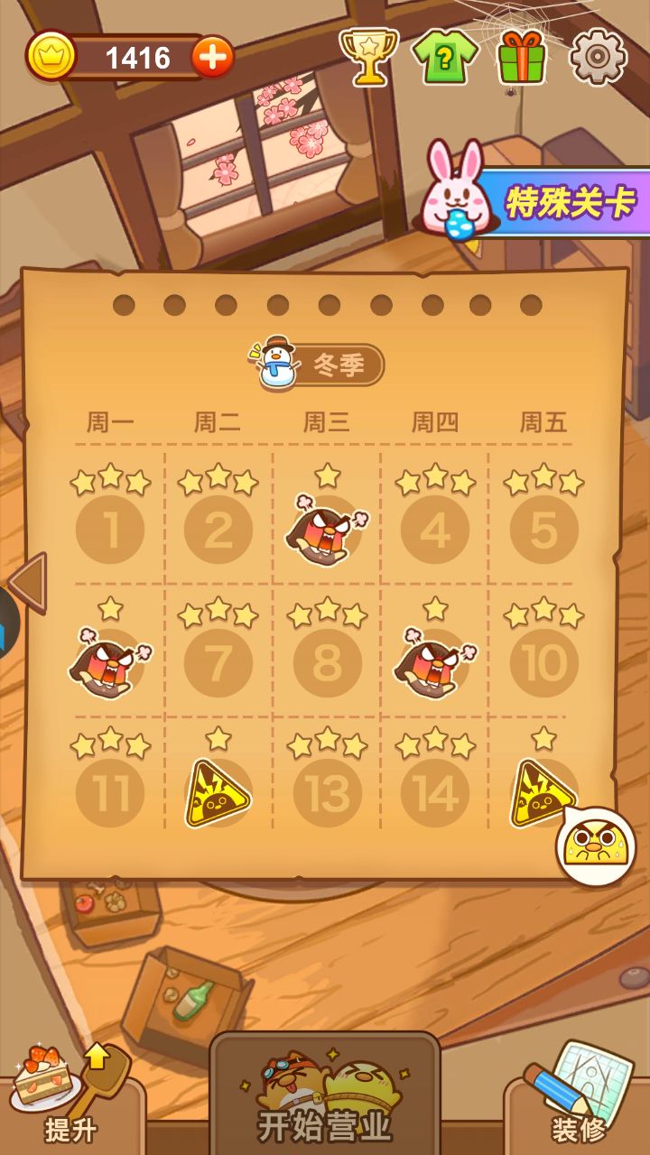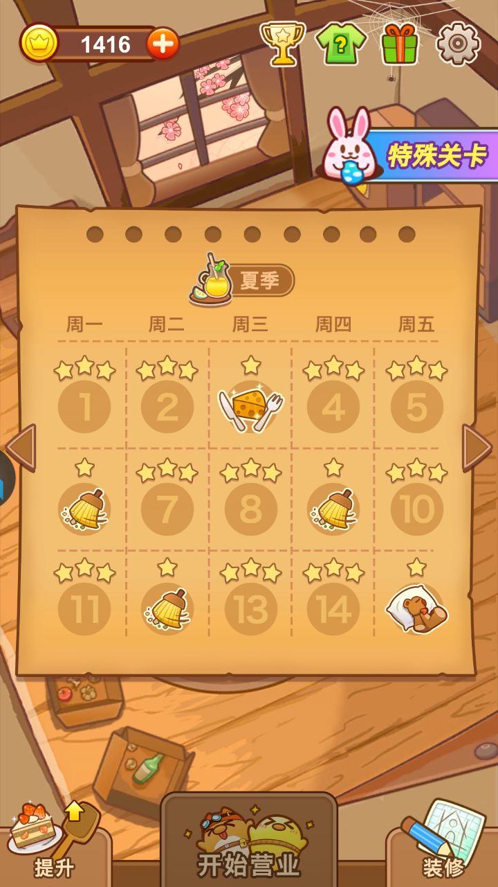 ⑥一星关卡会更简单一些,只要保证在没有客人走掉的基础上完成另一个条件即可