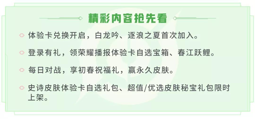 2月18日不停机更新:对局赢永久皮肤,白龙吟、逐浪之夏体验卡限时兑换