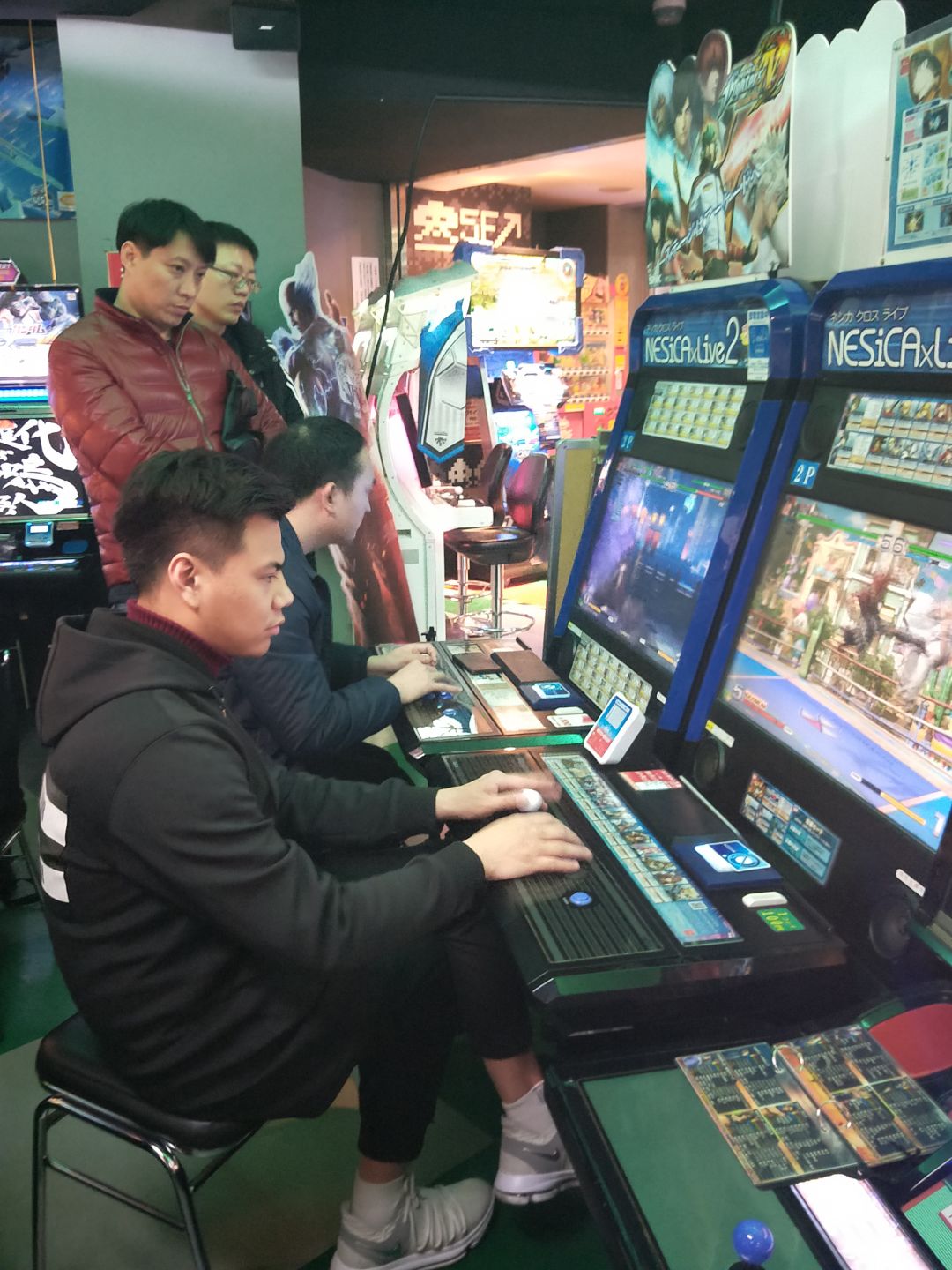 对战结束后,我们本次的行程就正式宣告结束了。不过由于队员还沉浸在拳皇的文化中,我们全员组队一起去了日本大阪的街机厅。与国内街机厅不同的是,日本街机厅采用的是全国联网模式,所有人投币后,都可以与全日本所有街机厅的玩家进行对决。下图为小孩和程龙在街机厅联网对战。