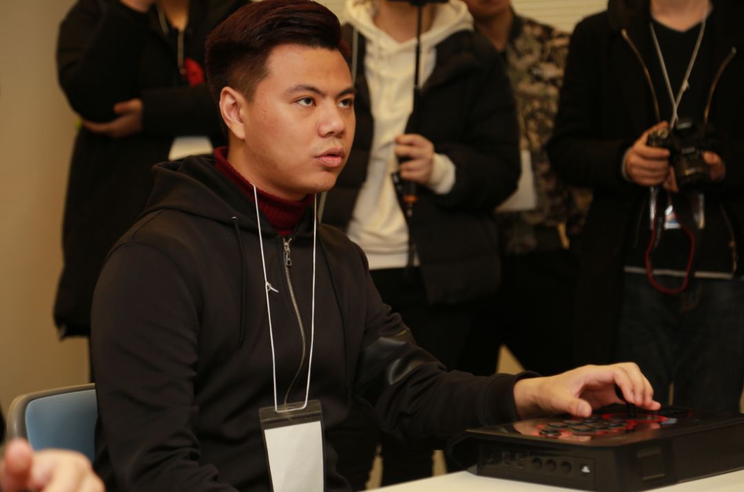 原画作品观赏完毕之后,我们又回到2楼进行了本次活动竞技环节。《拳皇14》世界冠军小孩和SNK开发者的一场对决。由于势力悬殊的情况下,小孩经历了单手作战,蒙眼作战,以及直接触发跳过前两个格斗家作战等非平等待遇。