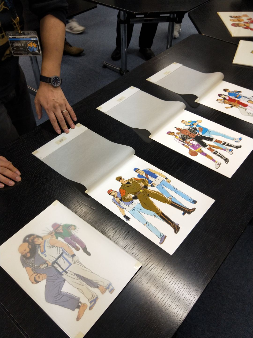 然后我们离开会场,进入活动的第二个环节,也就是SNK系列作品原画的公布。这些作品都是98年以前,电脑绘制技术还没有普及时,当时的开发者所绘制的。其中不乏一些我们耳熟能详的大神开发者,比如森气楼。这些人用他们的青春,在当时那个年代,做了这些超越那个年代的作品。现在我在这里为大家公布。由于图片太多,在此只公布部分作品。其余作品我将在后续帖子中发布。